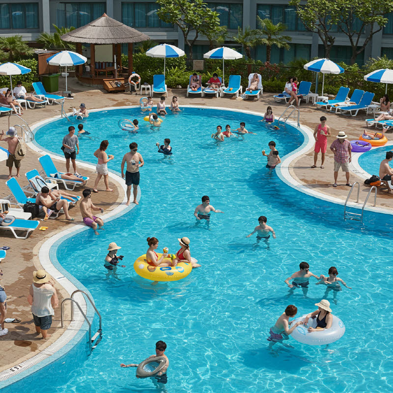 - 장점: 전 객실 오션뷰, 인피니티풀, 워터파크, 키즈카페, 롯데리아, 편의점 등 다양한 부대시설