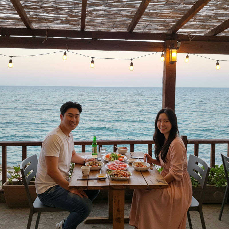 - 저녁: 낭만포차 거리에서 여수 밤바다를 바라보며 해산물 삼합과 여수밤바다 소주를 즐겨보세요.
