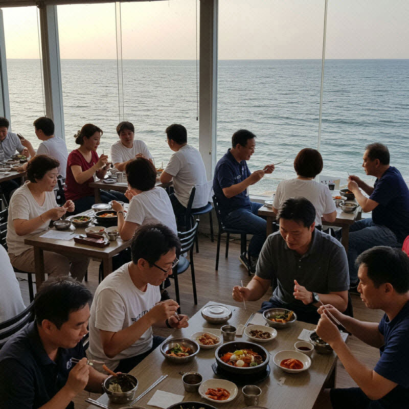 - 팁: 석양을 감상하며 식사, 싱싱한 해산물