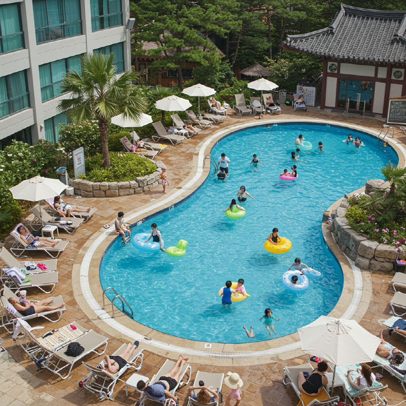 - 다양한 종류의 수영장 (유아풀, 파도풀, 유수풀 등)